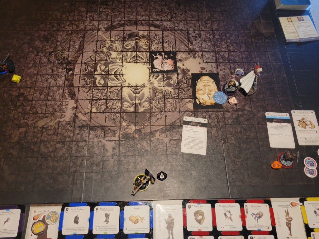The second card, Lashing Curses felt like a good draw to me until it actually affected Bastet! She cooked herself with her 4 insanity, dealing 2 more severe injuries to herself! Whilst she took no tokens, she was looking a lot worse for wear after that.