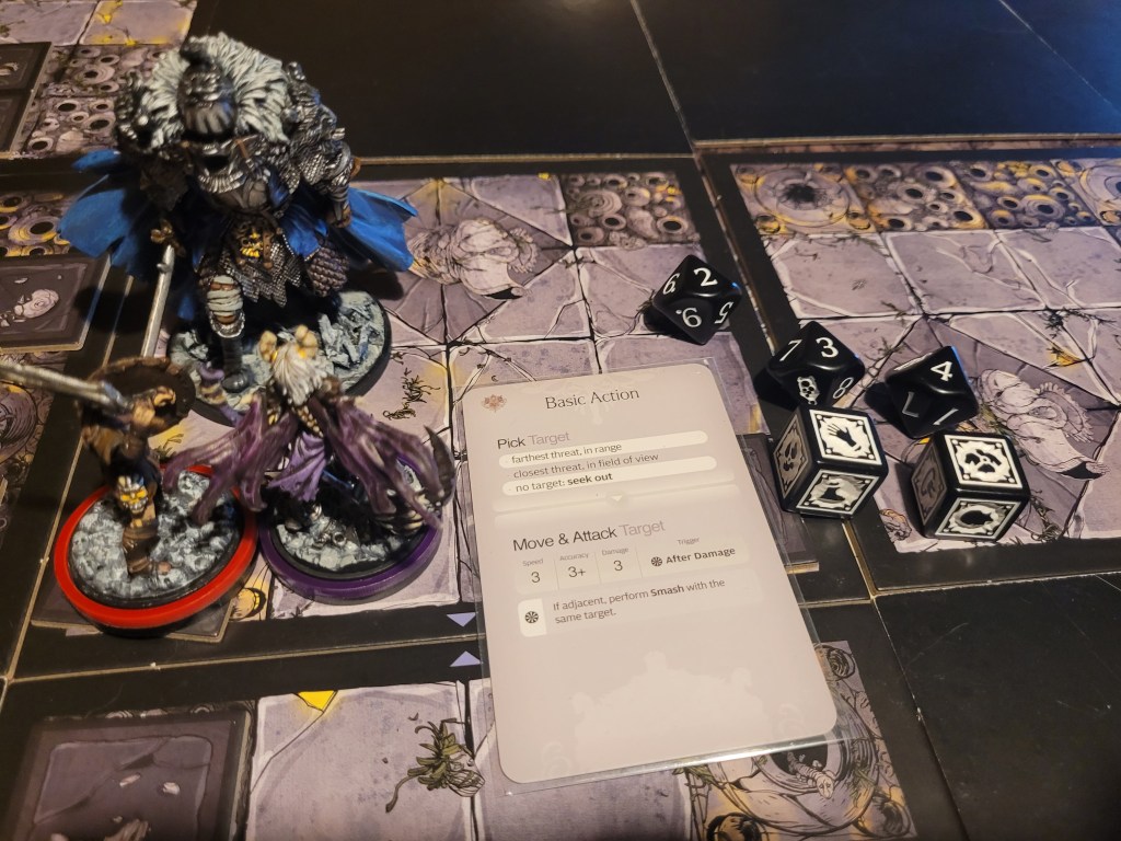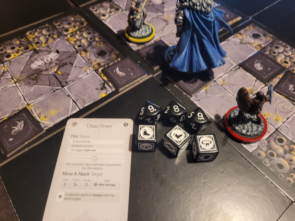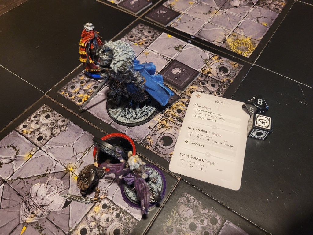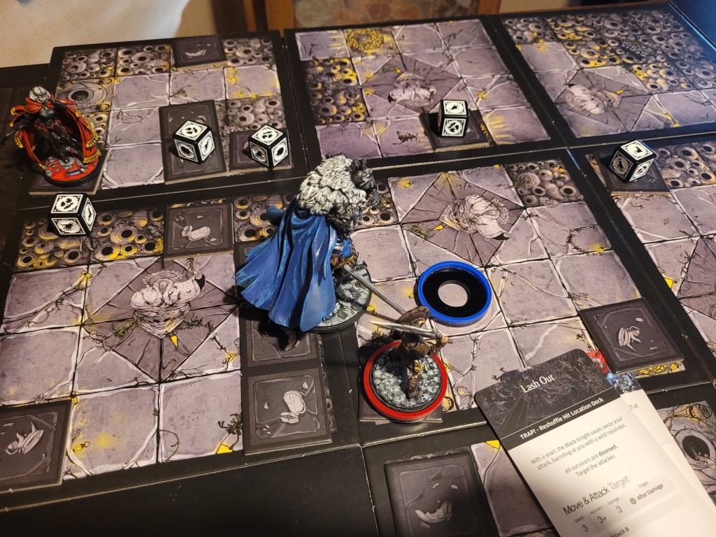 Lucky activated next, he was right in front of the monster and ready for a fist fight – surprisingly he only managed to hit the monster once (on 4+) so no other token was removed as the first wound of the fight got dealt.