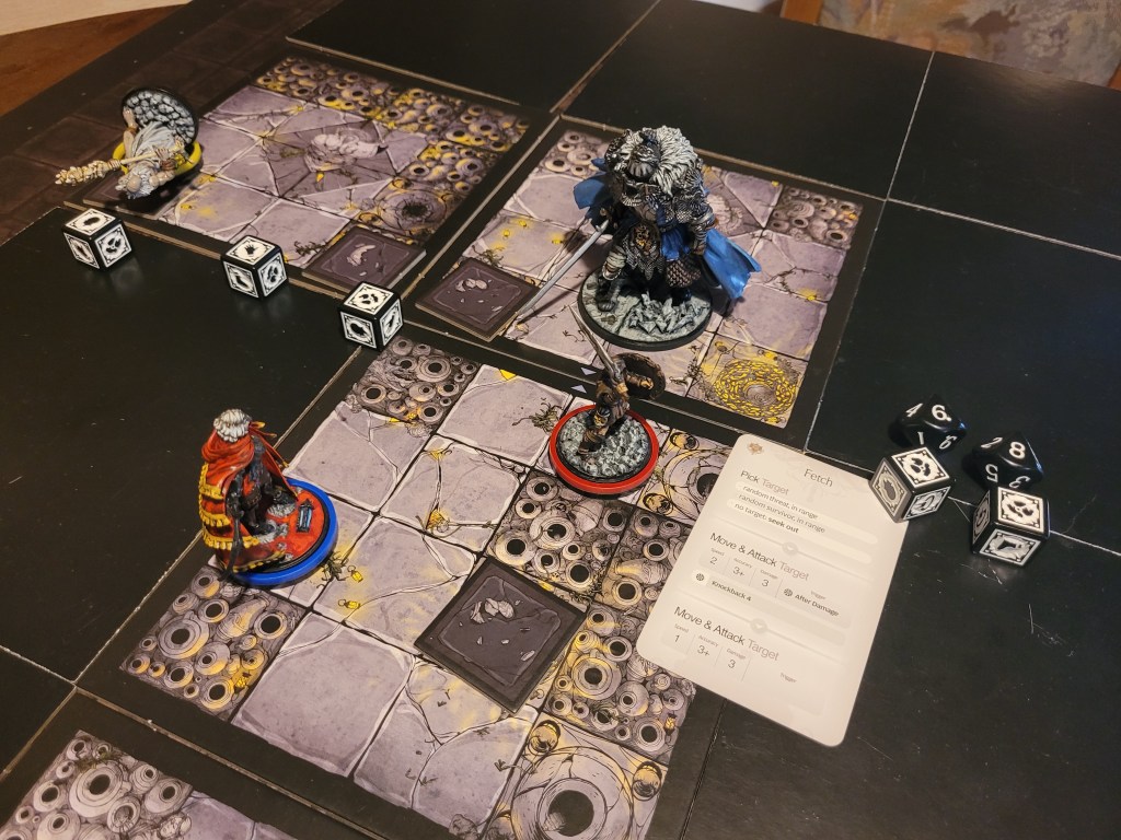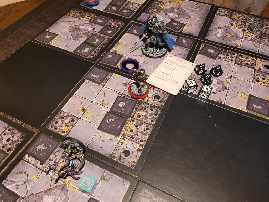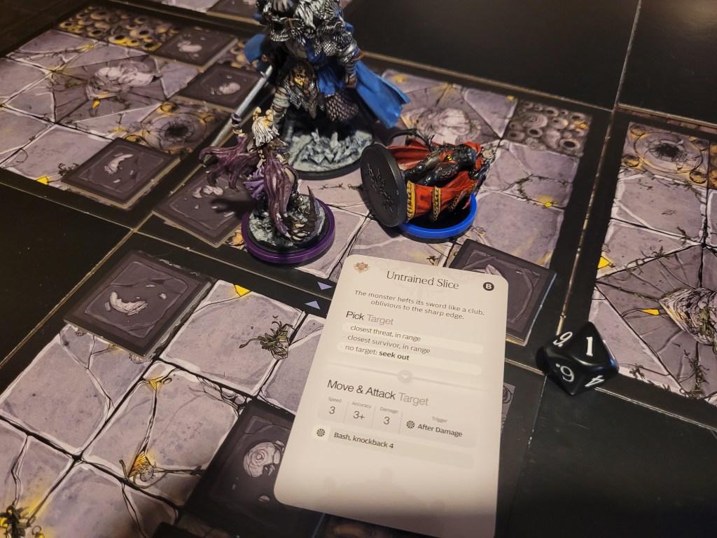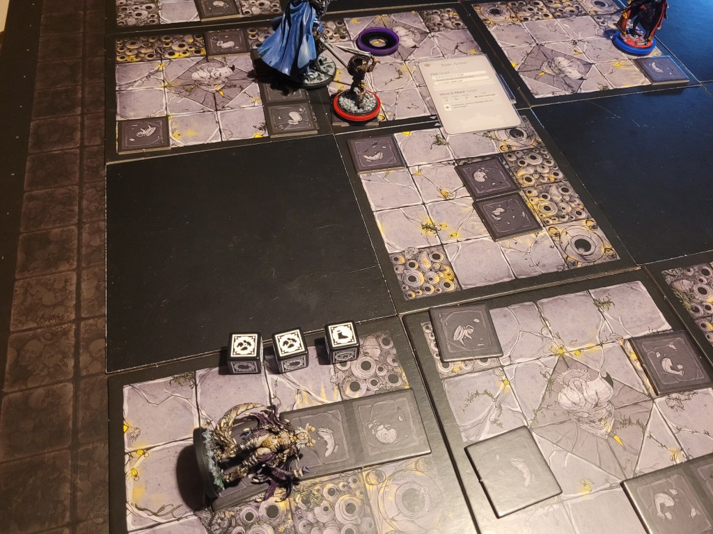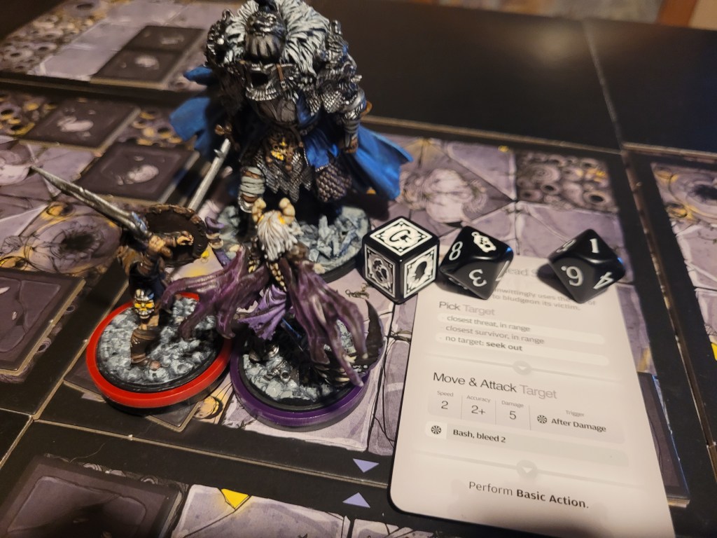 Lucky activated next, he was right in front of the monster and ready for a fist fight – surprisingly he only managed to hit the monster once (on 4+) so no other token was removed as the first wound of the fight got dealt.