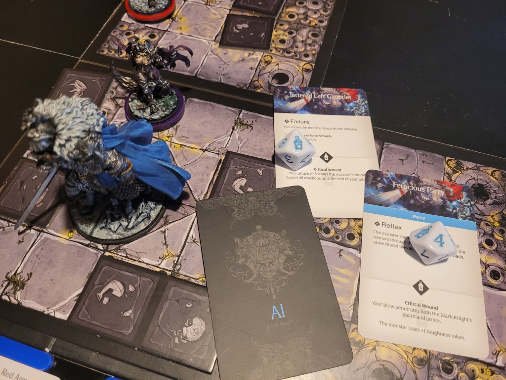 Taking the Black&Red Armor to the Black Knight didn’t feel great, but its not like we had an alternative ready to go. And I had some hope that the extra +2EVA and the ability to negate an additional hit via the -1ACC-token could prevent the worst of it.